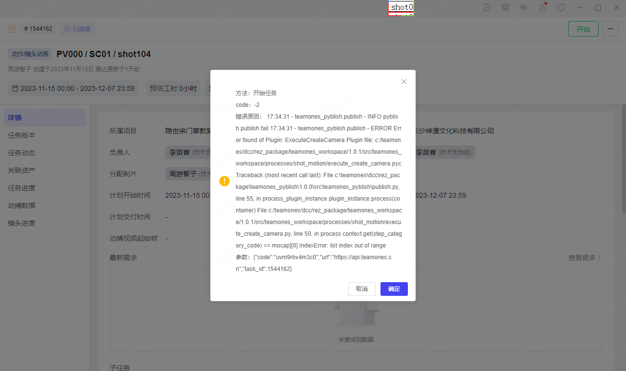 te_create_camera.py,line50,inprocesscontext.get(step_cate ory_code)= mocap][ofIndexEr Error:list indexout of range