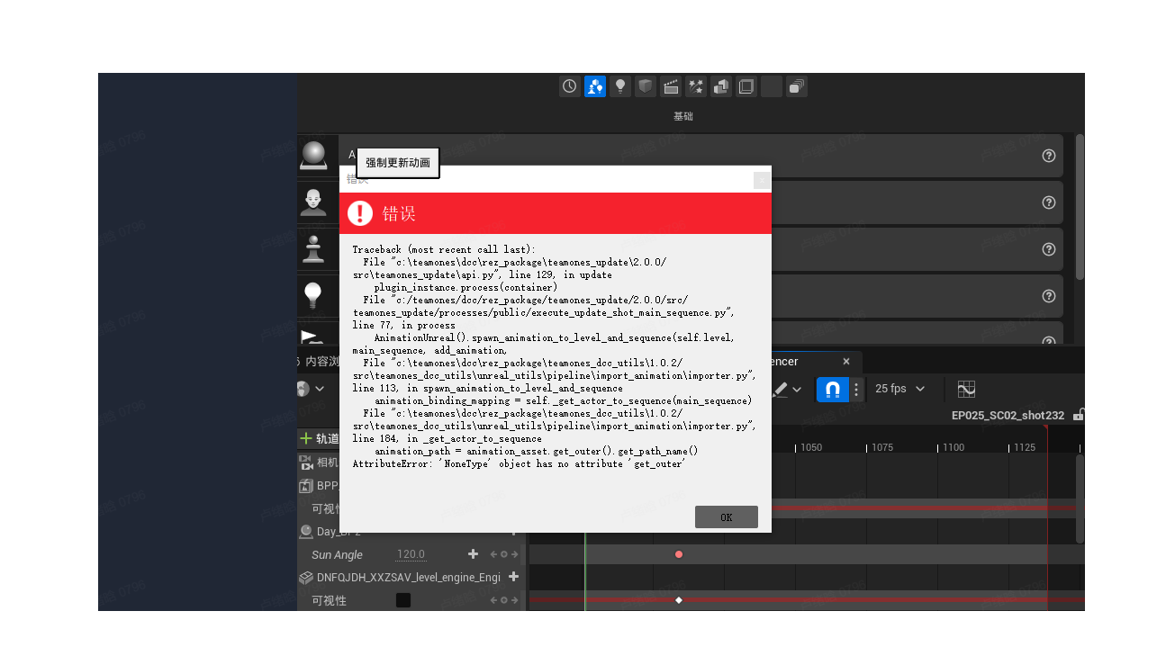 更新动画报错:animation_path = animation_asset.get_outer().get_path_name() AttributeError: 'NoneType' object has no attribute 'get_outer'