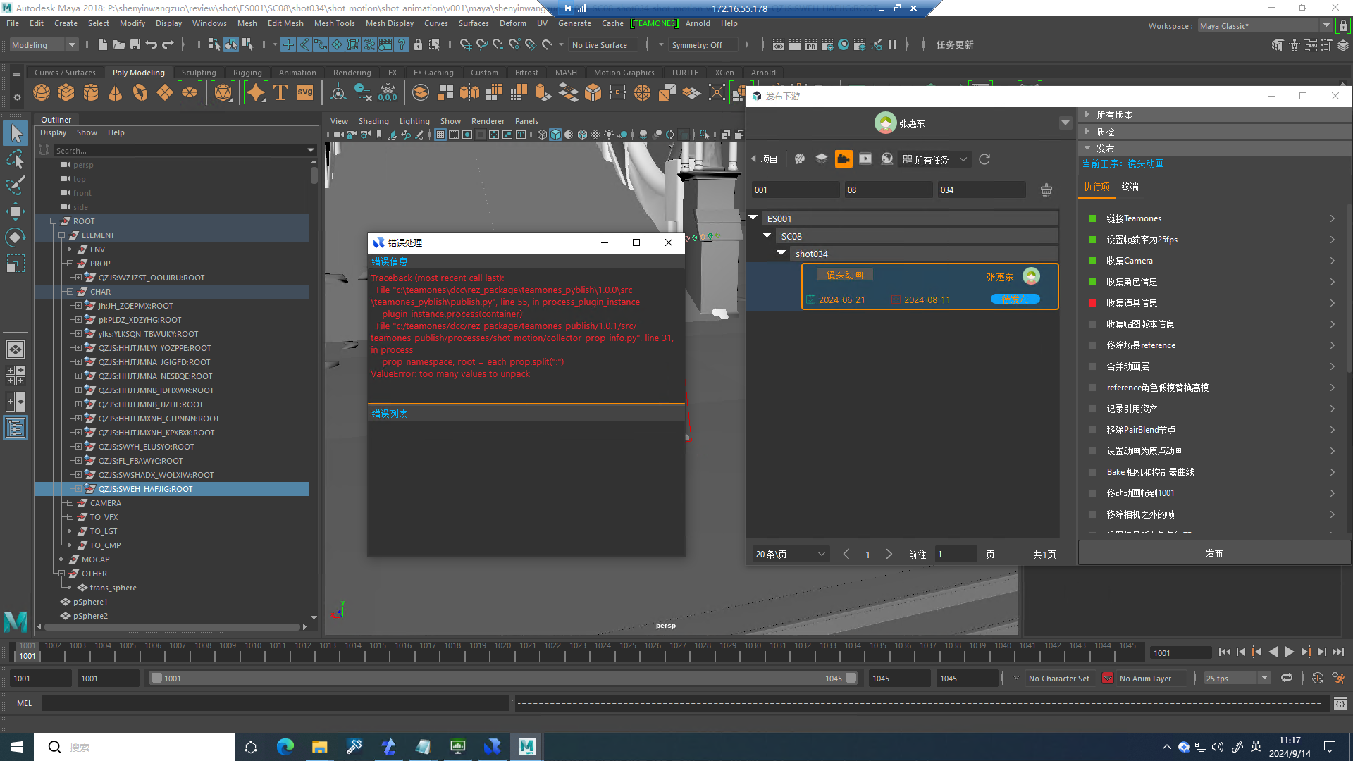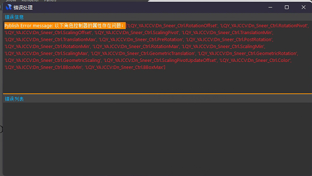 Pyblish Error message: 以下角色控制器的属性存在问题.........