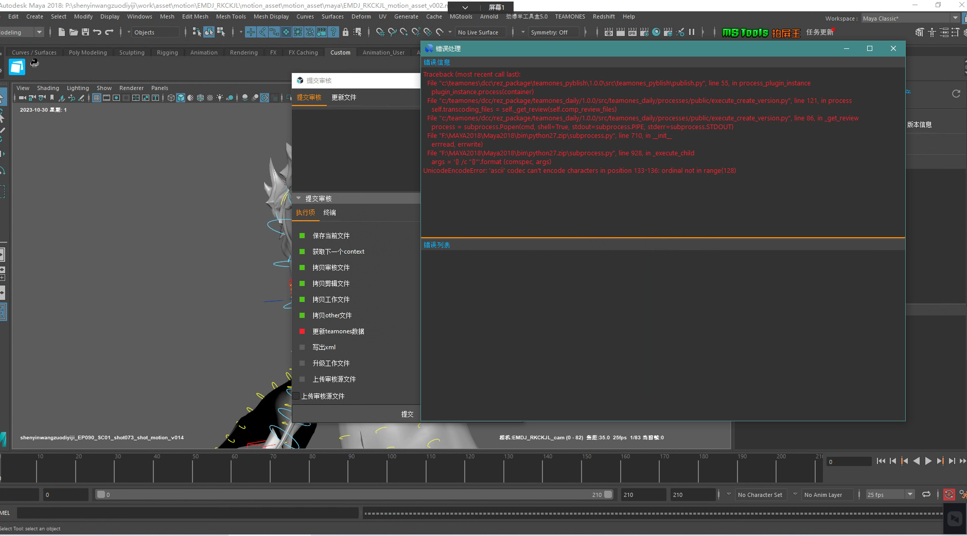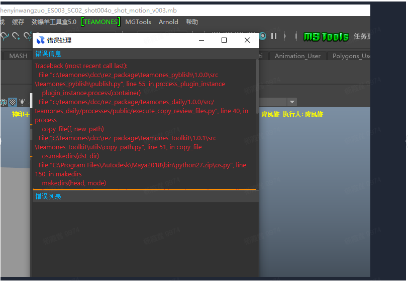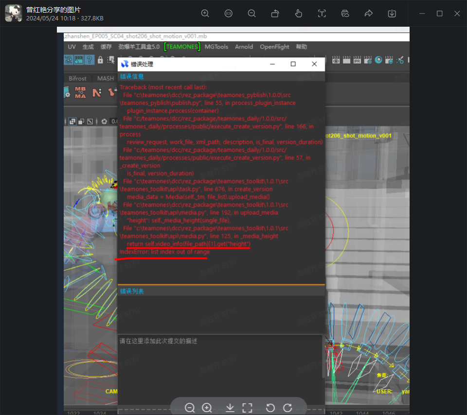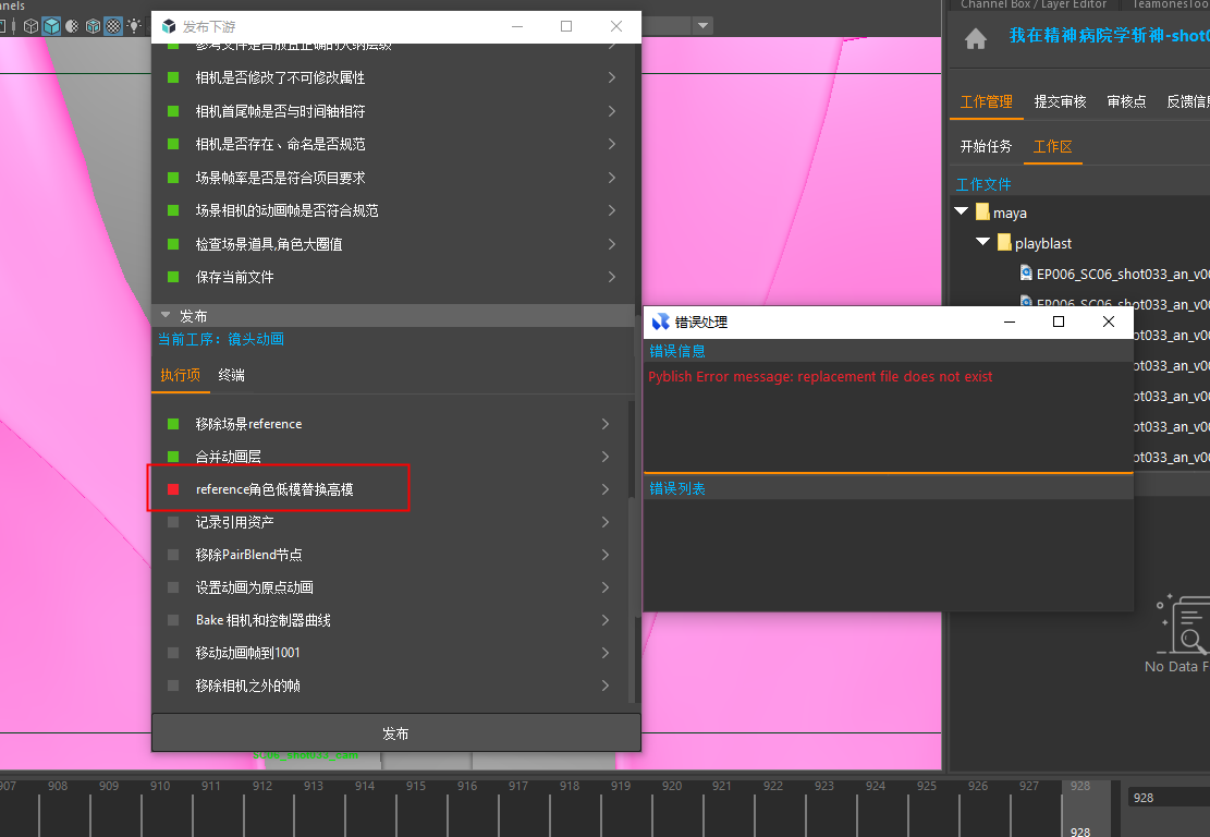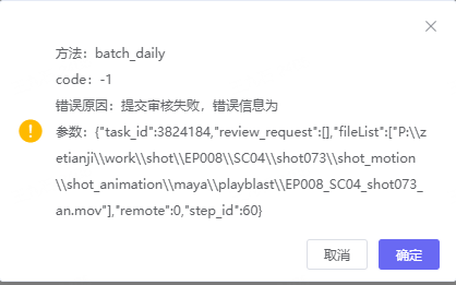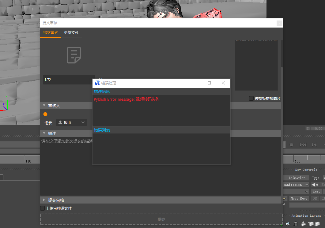 提交审核会自动复原上一次提交审核的视频,如果playblast文件夹内有上次提交的并且提交失败的视频(分辨率有问题),会直接报错