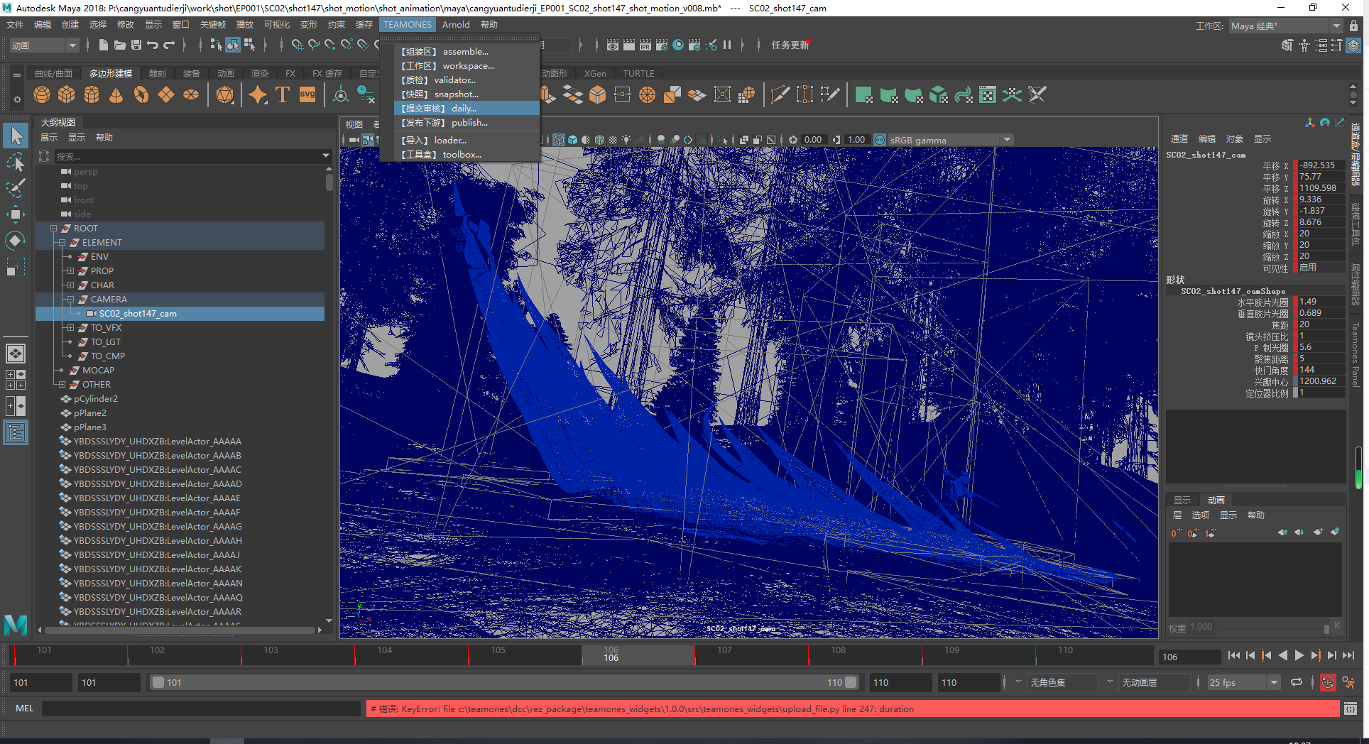 场景的资产清单和teamoens关卡资产清单不一致,teamones镜头关联资产清单:XXX; 当前场景资产名字空间清单:XXX