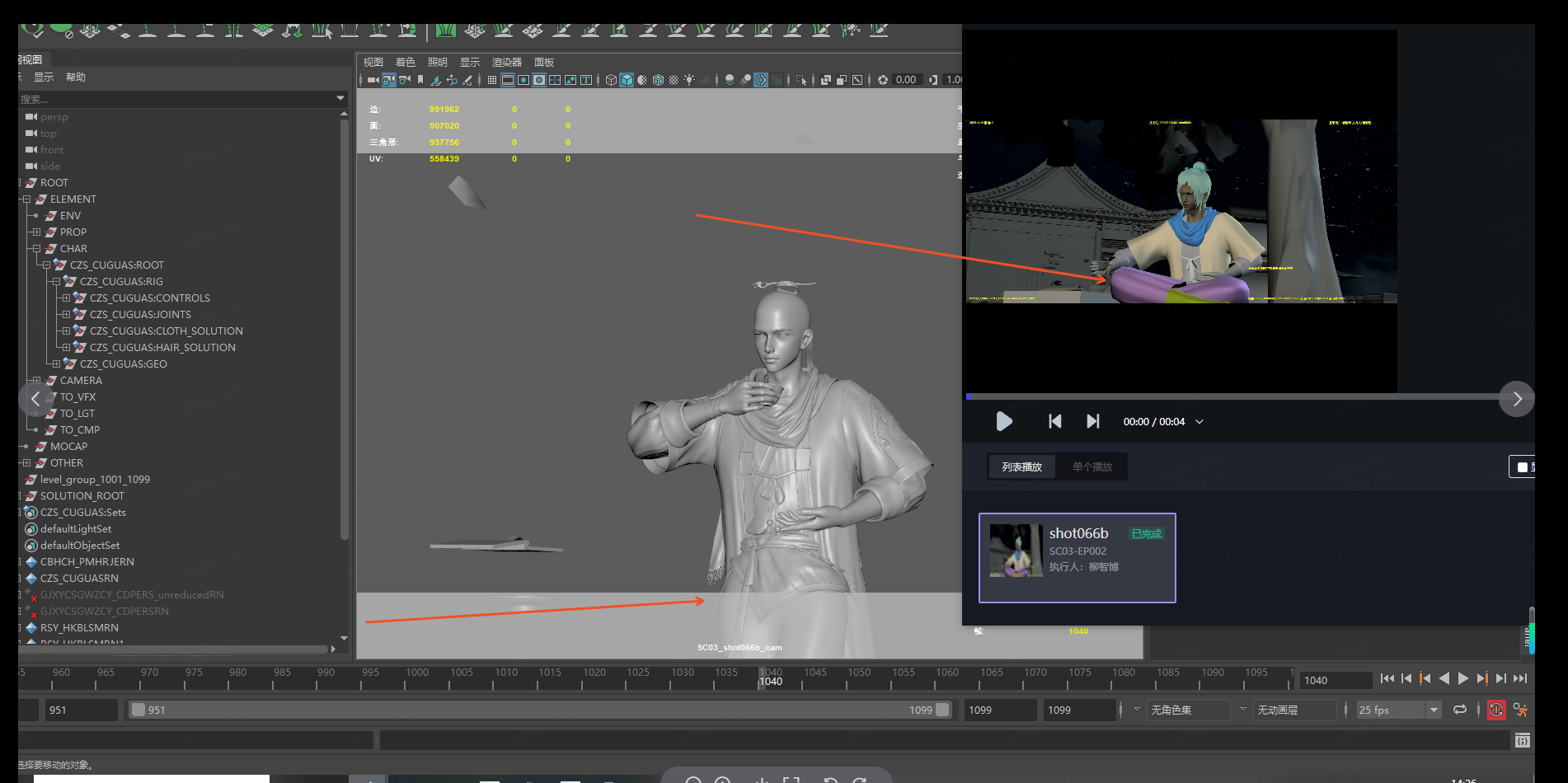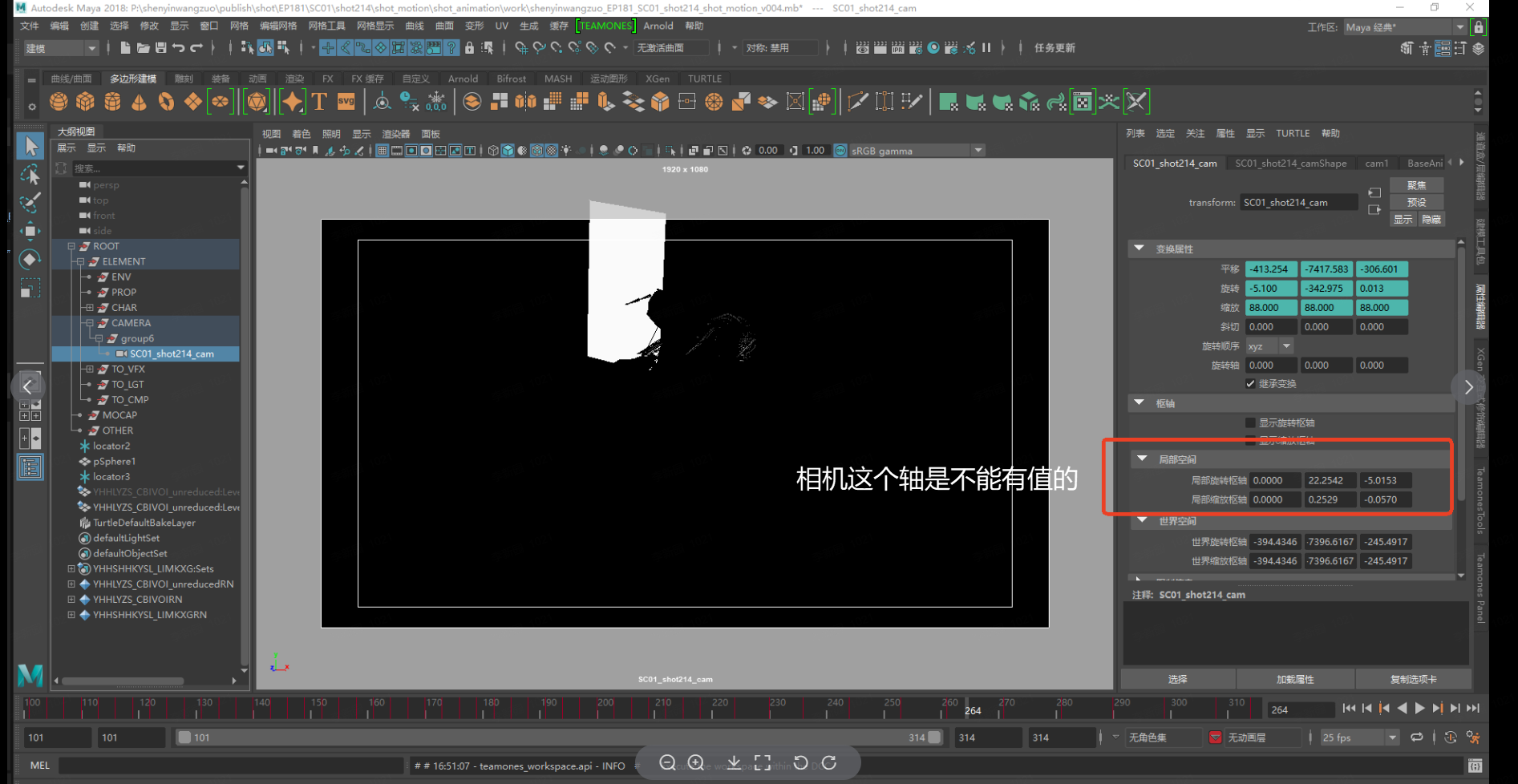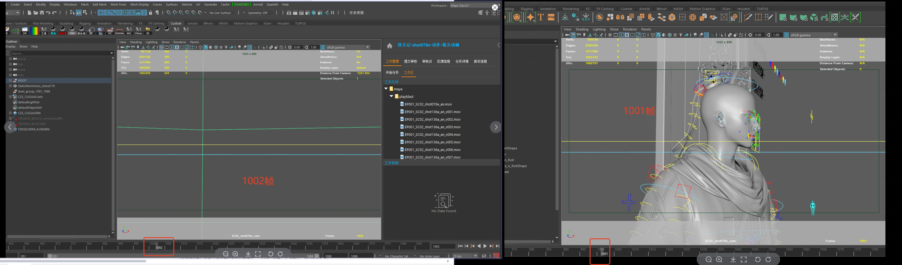 动画1001帧角色相机位置是对的,1002帧角色相机位置位置变了