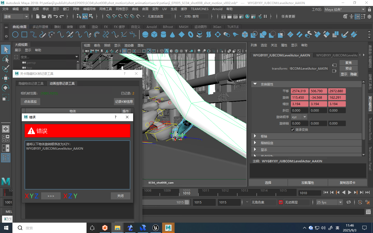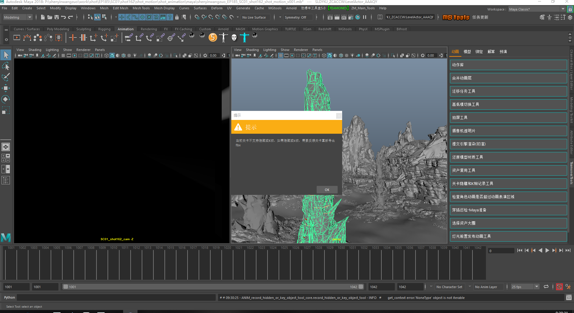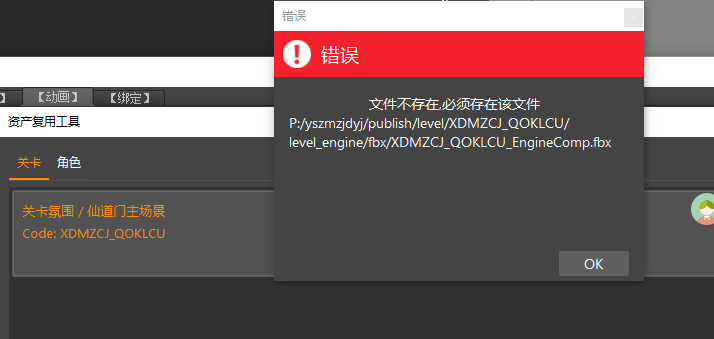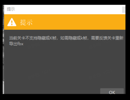 K帧工具报错:当前关卡不支持隐藏或K帧,如需隐藏或K帧,需要反馈关卡重新导出fbx