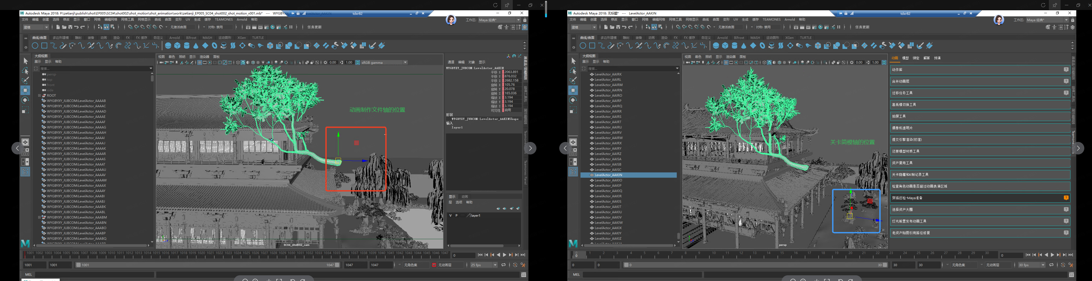 1、动画修改旋转物体顺序为XZY 2、动画不修改关卡模型的轴重新K帧
