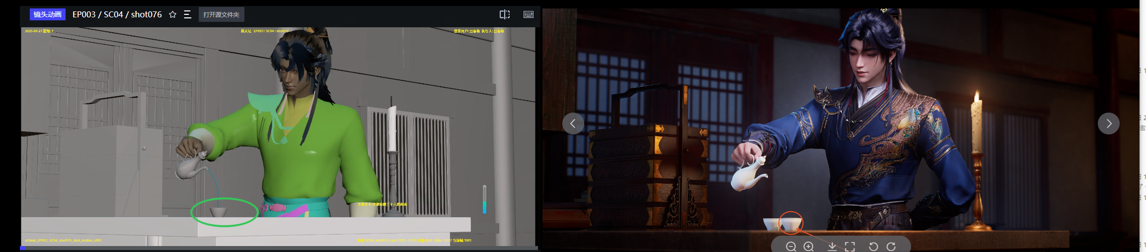 组装后镜头视角和动画拍屏不一致,部分角色和动画拍平位置对不上