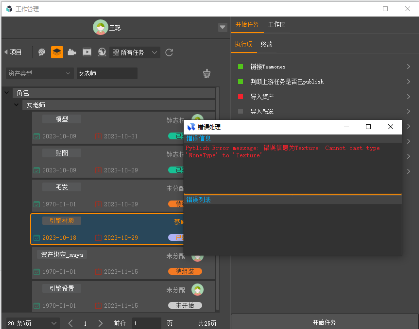 Pyblish Error message:错误信息为Texture: cannot cast type 'NoneType' to 'Texture'