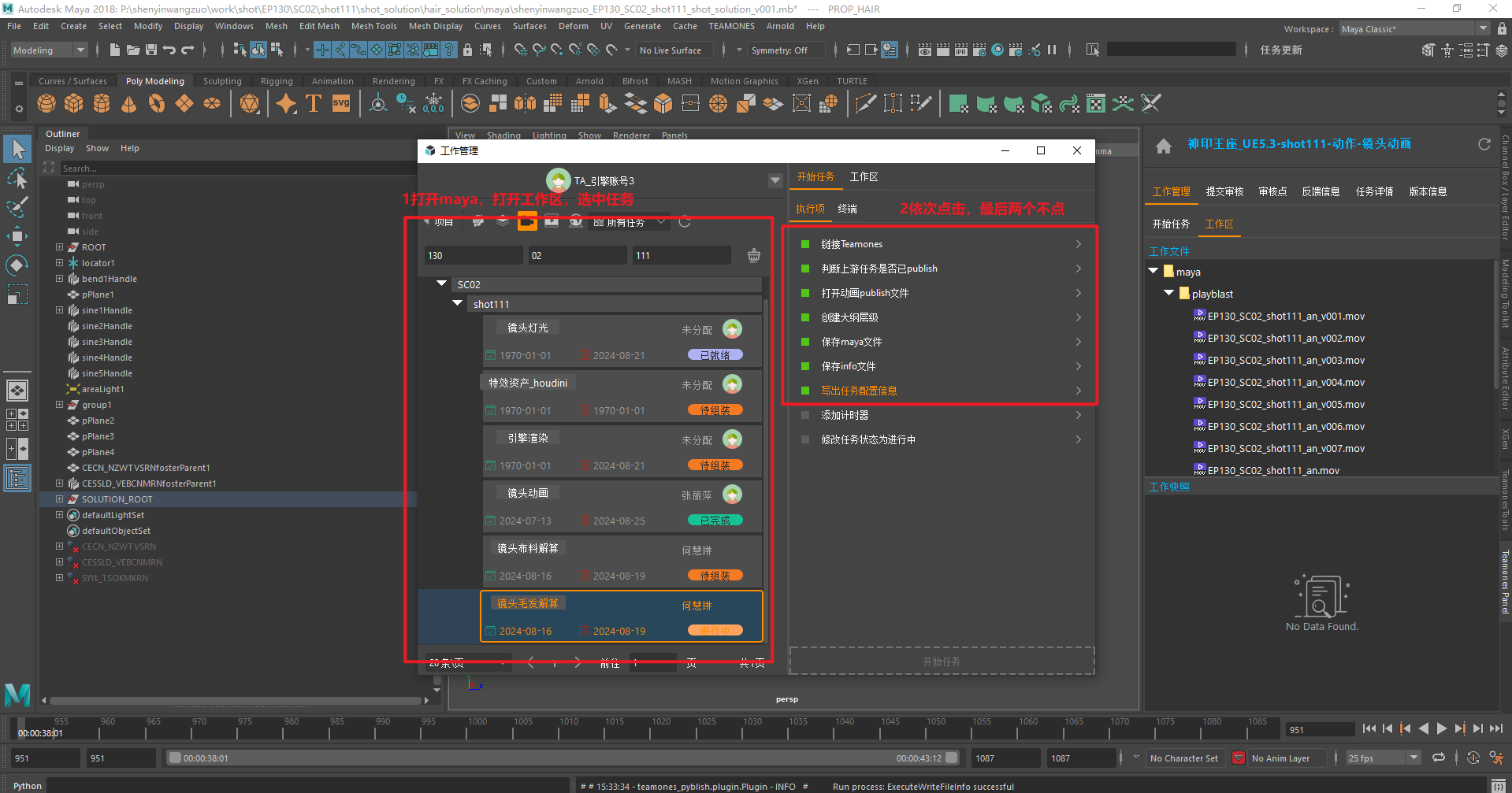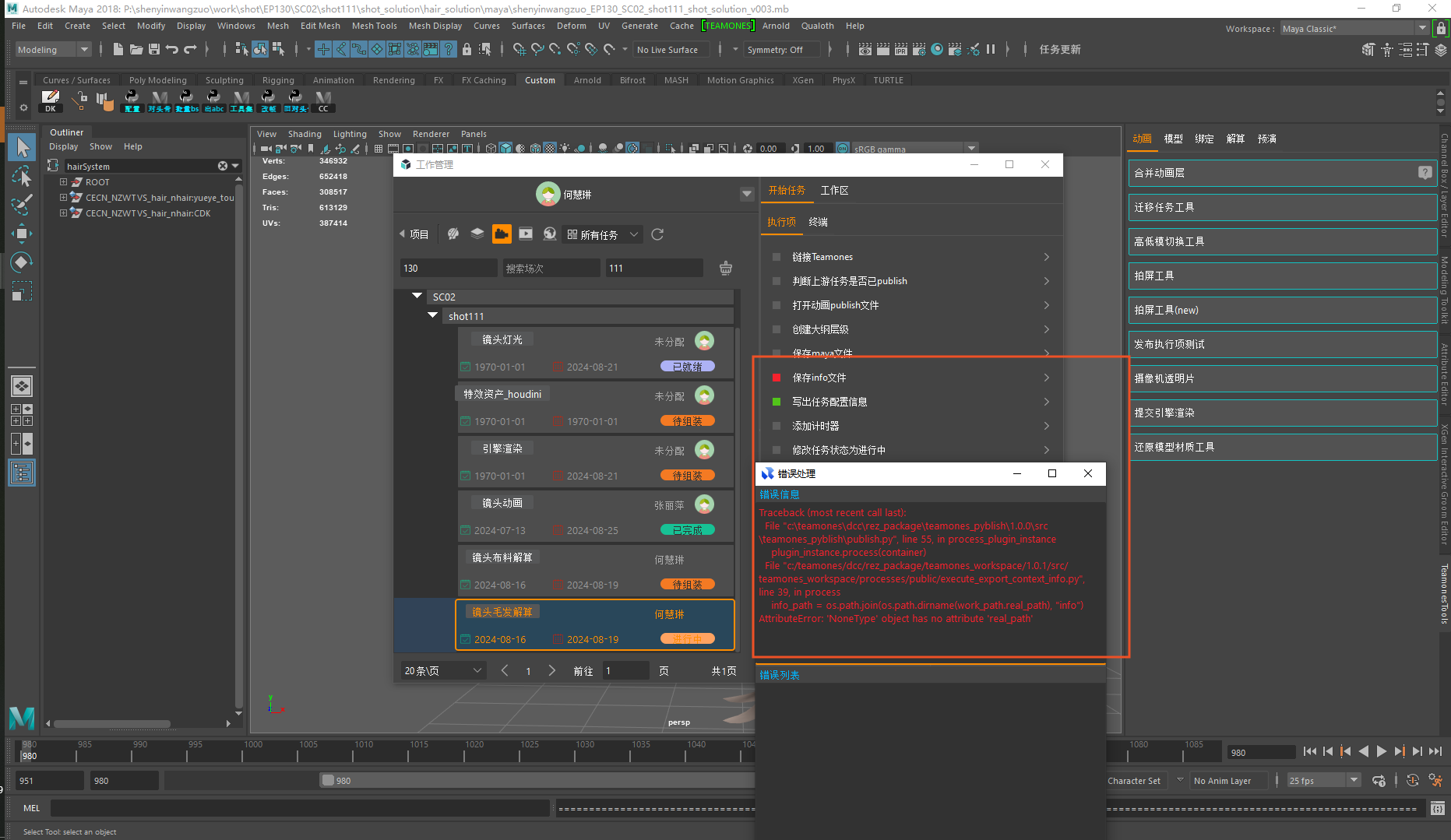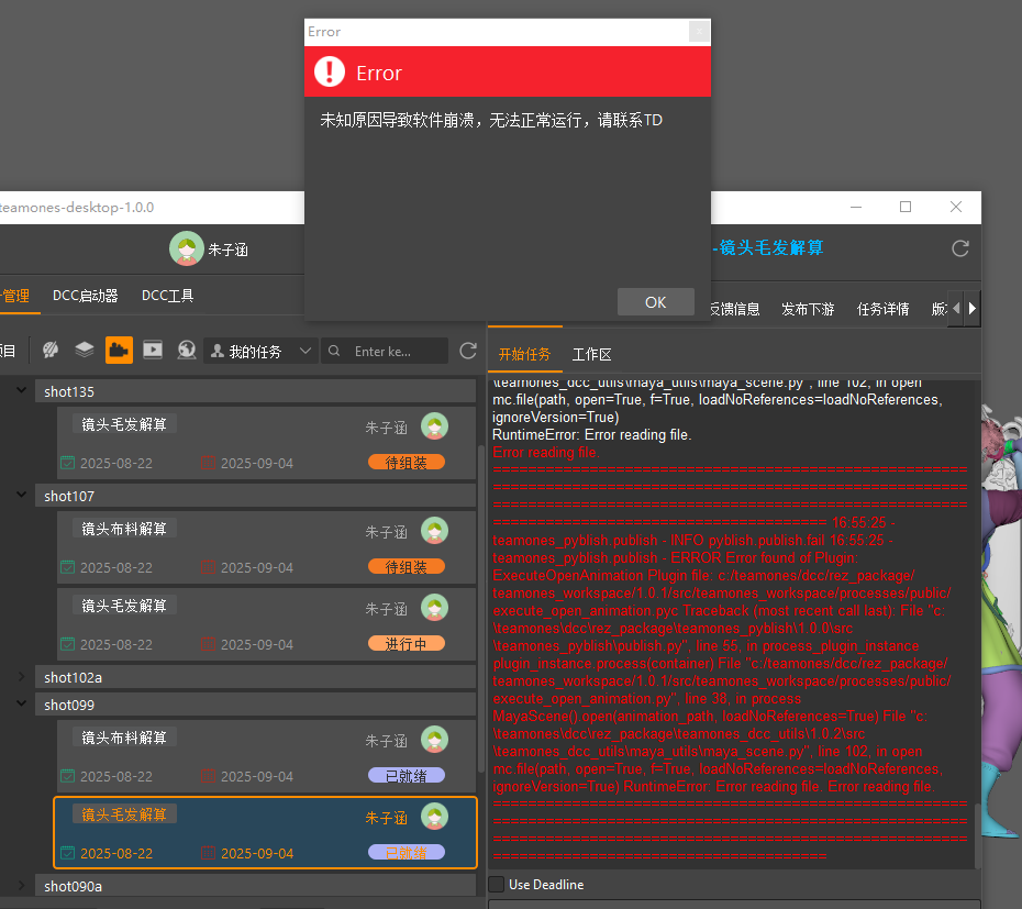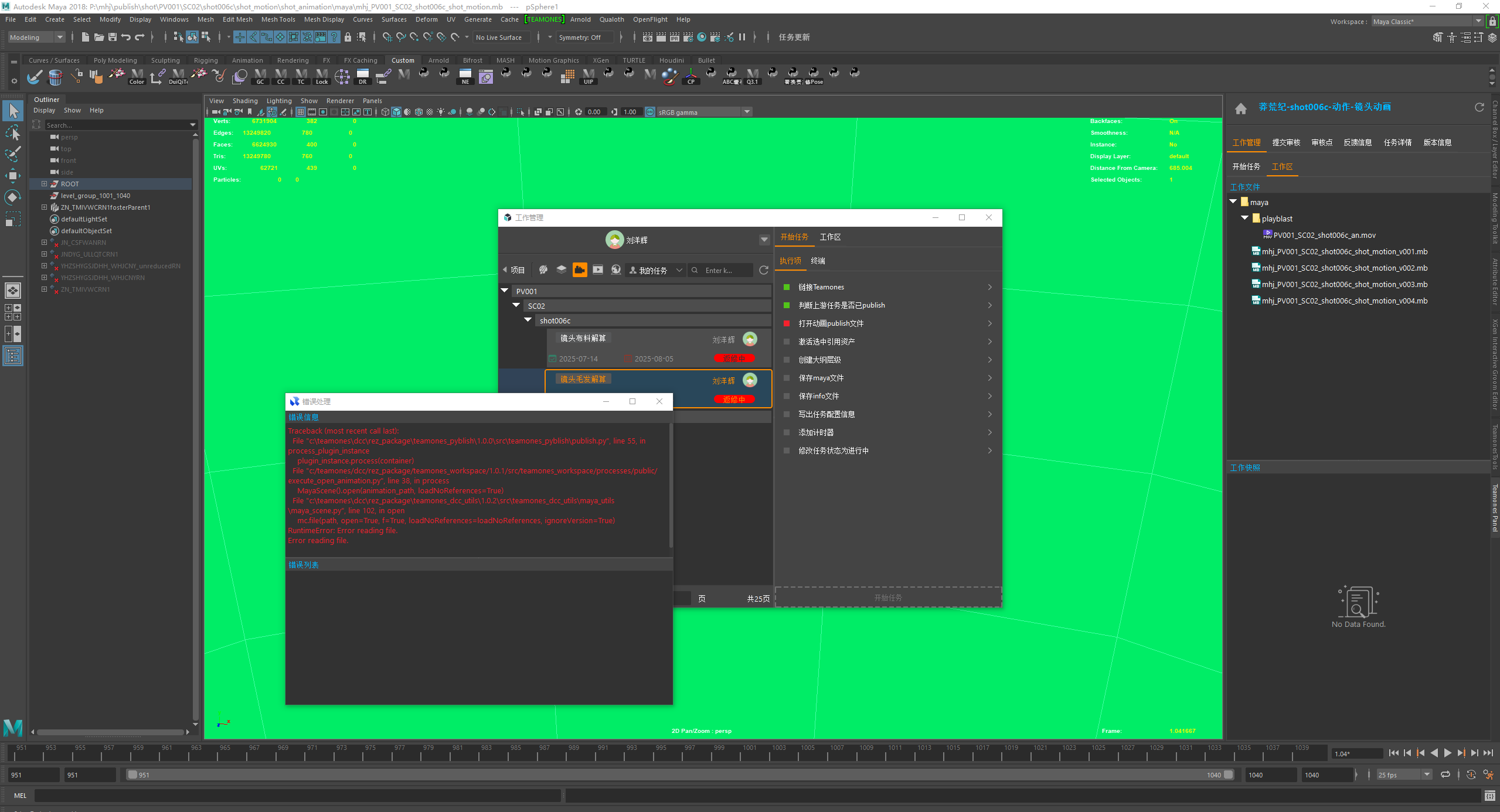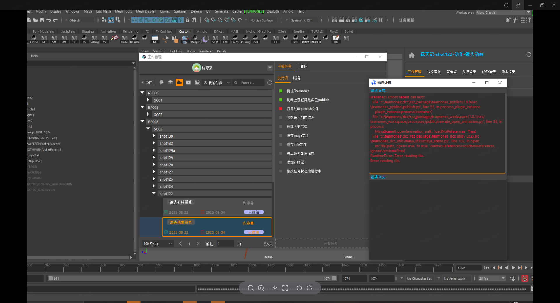 打开此路径下的文件,打开是否有报错,或者有画面 P:\项目名\publish\shot\集\场次\镜头号\shot_motion\shot_animation\maya 有报错和无画面反馈动画重新发布