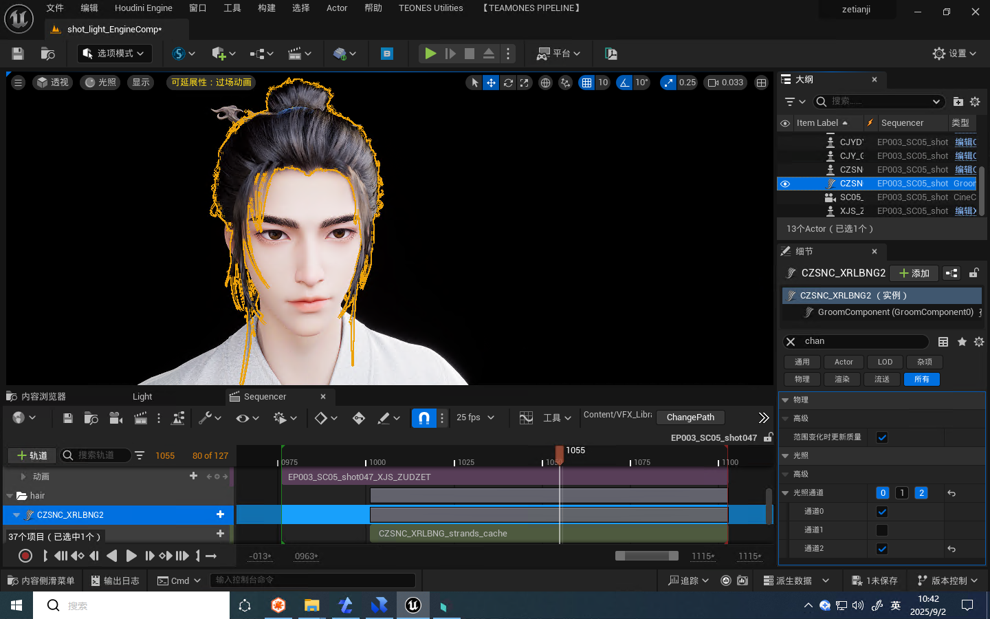 解算毛发在渲染后最后一帧会跳,和角色蓝图对不上