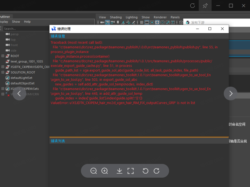 解算-毛发解算发布报错,导出guide缓存报错 not in list