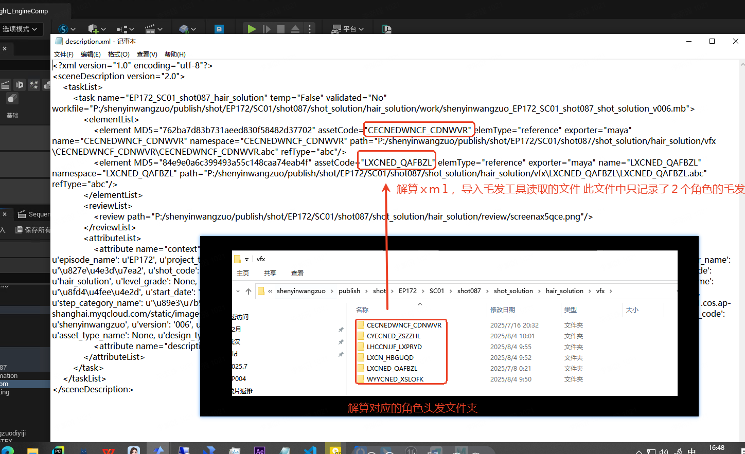 解算毛发的文件是每个角色的毛发都有的,但解算毛发的xml中只记录上两个角色的毛发