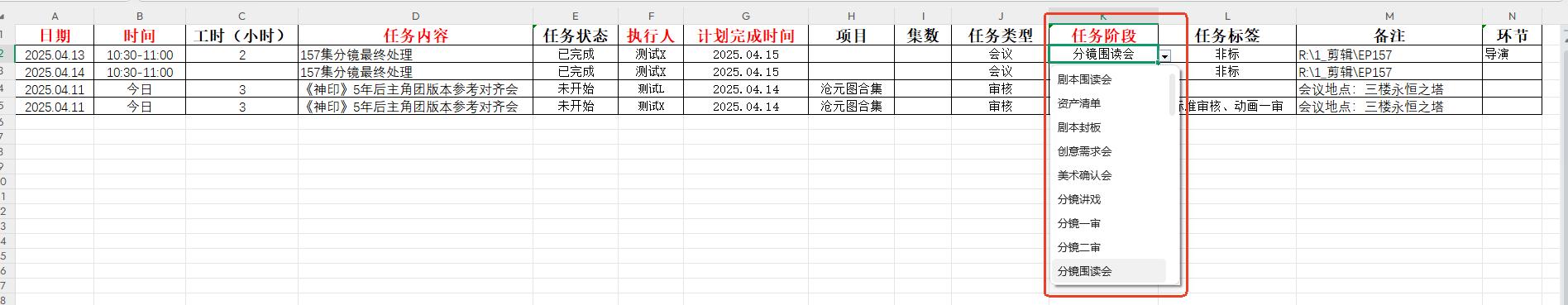 导入导演任务模板增加任务阶段,任务阶段字段可选择,如下图: