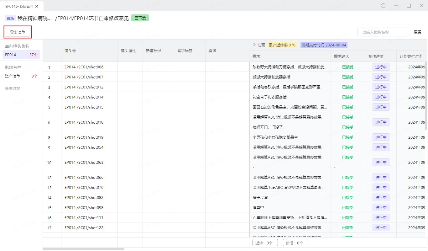 1 需求单发布后,导出清单可导出需求单内容,导出按钮如下