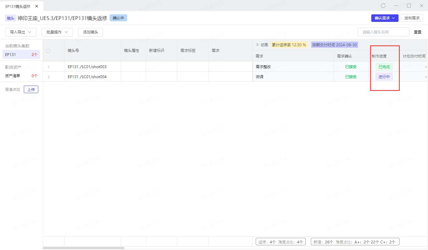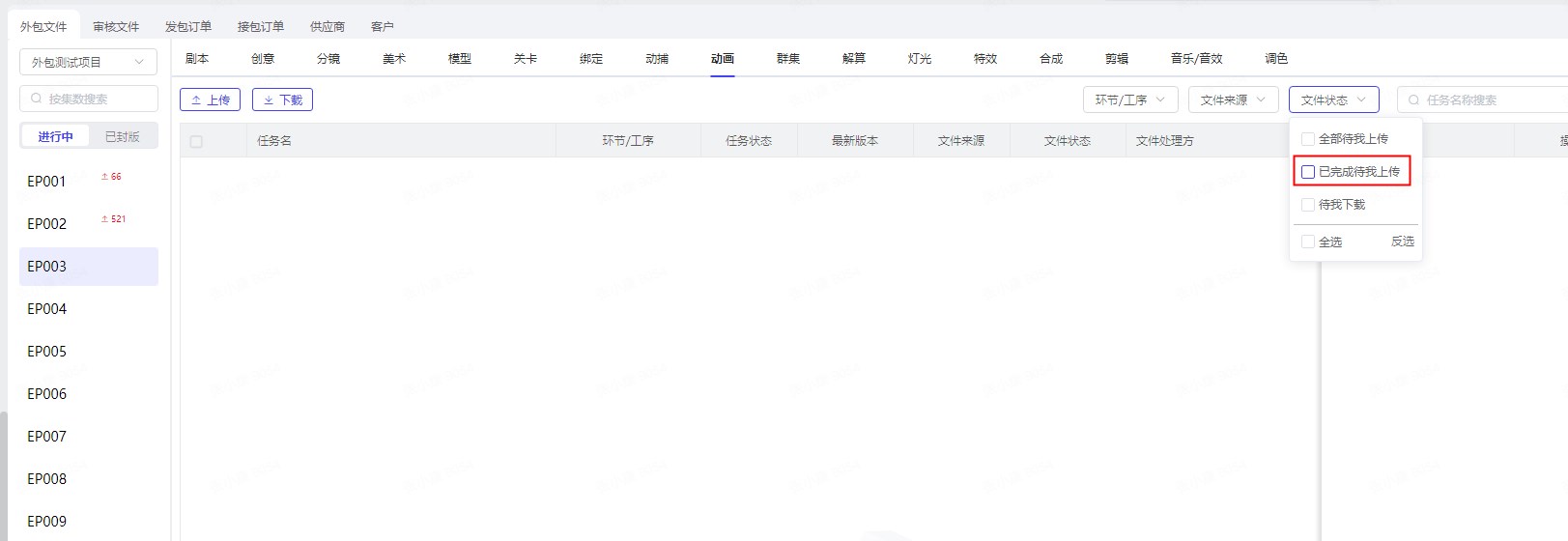 四、 to动画文件外包上传界面支持筛选,已完成待上传
