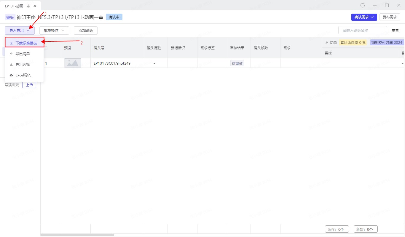 1.1、 创建审核任务,可根据制作团队或者镜头号筛选镜头