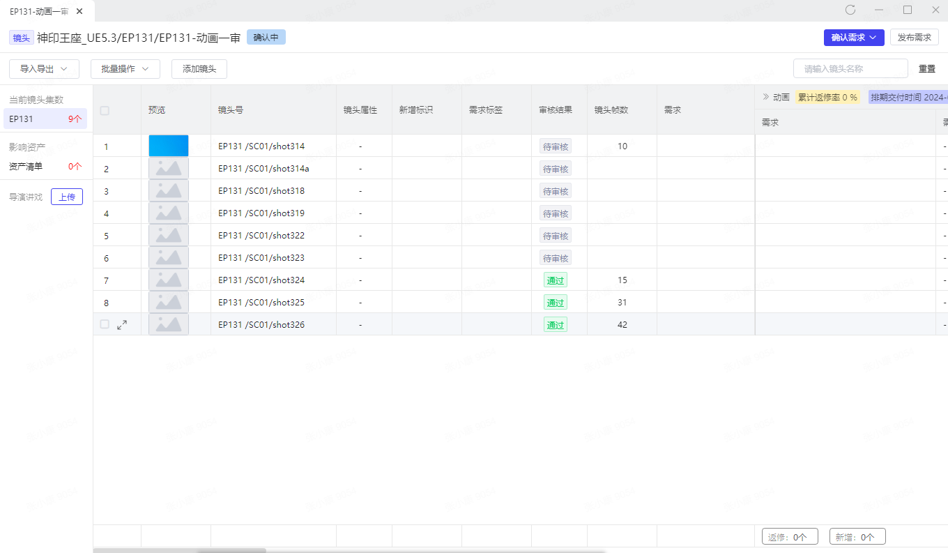 3.2 审核任务导入的帧数在需求环节报表中展示如下