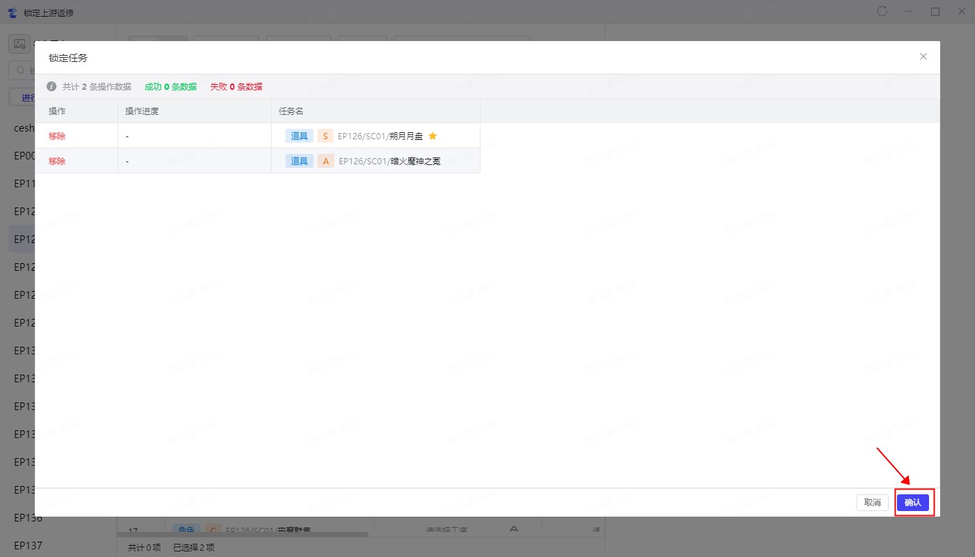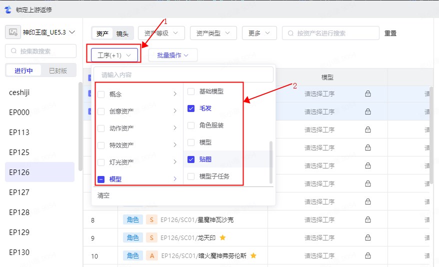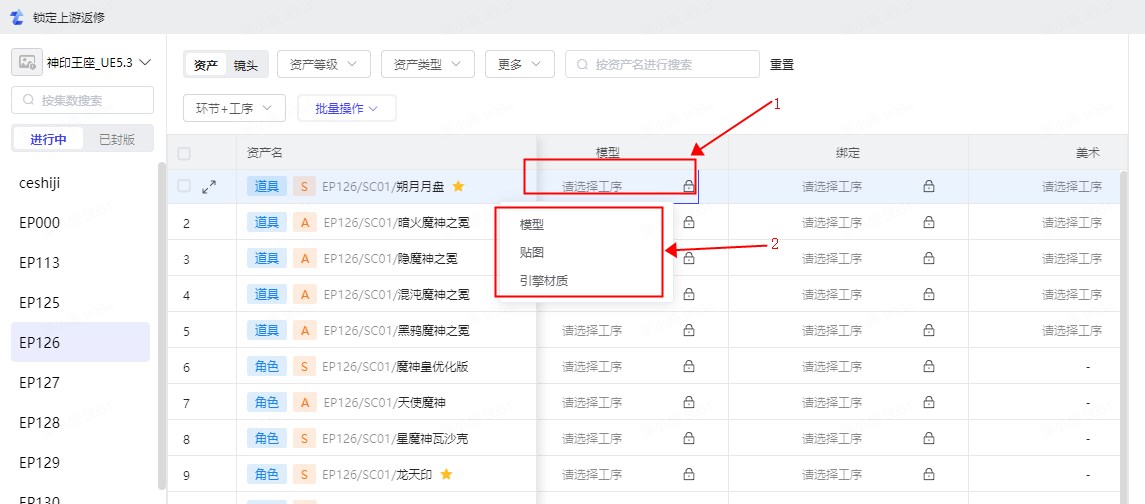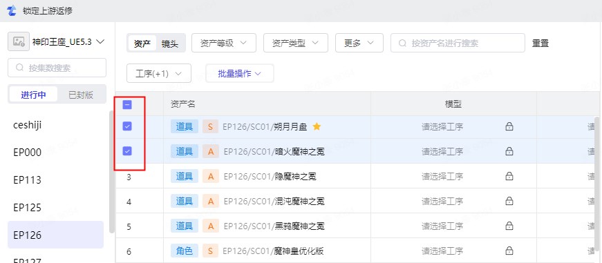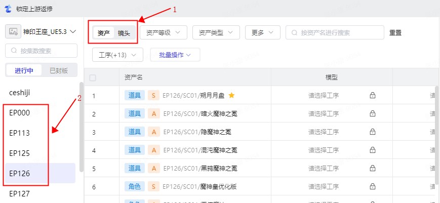 可选择资产或镜头线,再选择左侧的集数进行后续锁定操作。