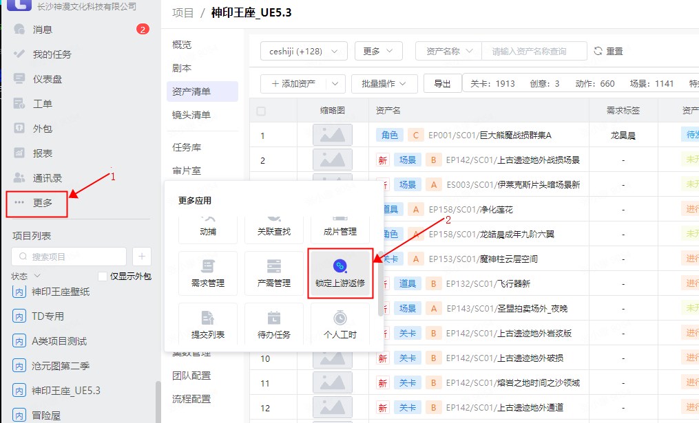 点击左侧菜单栏更多,在弹出框内选择锁定上游返修。